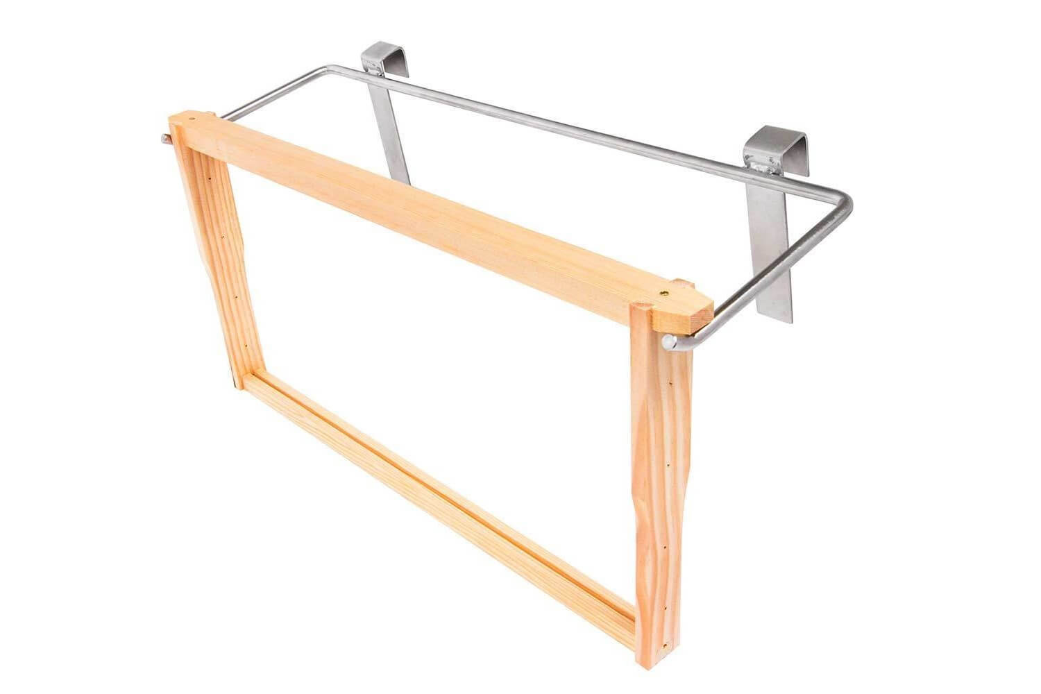 If you have ever knocked over a frame propped against the hive, you know why you need this. The frame perch fits snugly over the edge of the hive body to conveniently and securely hold your frames during a routine inspection. It holds three frames, giving you plenty of room in the hive to manipulate frames. Not only will you love it, but your bees will love it too! Stainless steel construction.