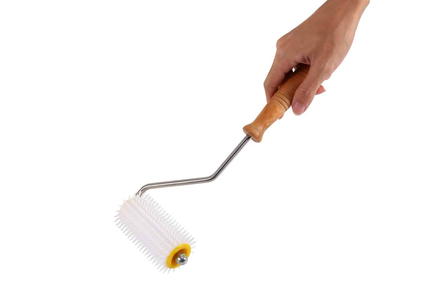 The roller portion of our uncapping roller is made from a durable, food-grade plastic. The roller is attached to the comfortable, wooden handle by a food-grade metal rod. The roller is offset from the handle making it easy to maneuver. To use, simply roll the spiked wheel over the top of capped honey comb. The spikes are strategically and evenly spaced so that they will pierce each comb in just the right spot. It can be used alone or in conjunction with an uncapping knife to reach into those frame corners that a knife can't. It can be cleaned in warm, soapy water.